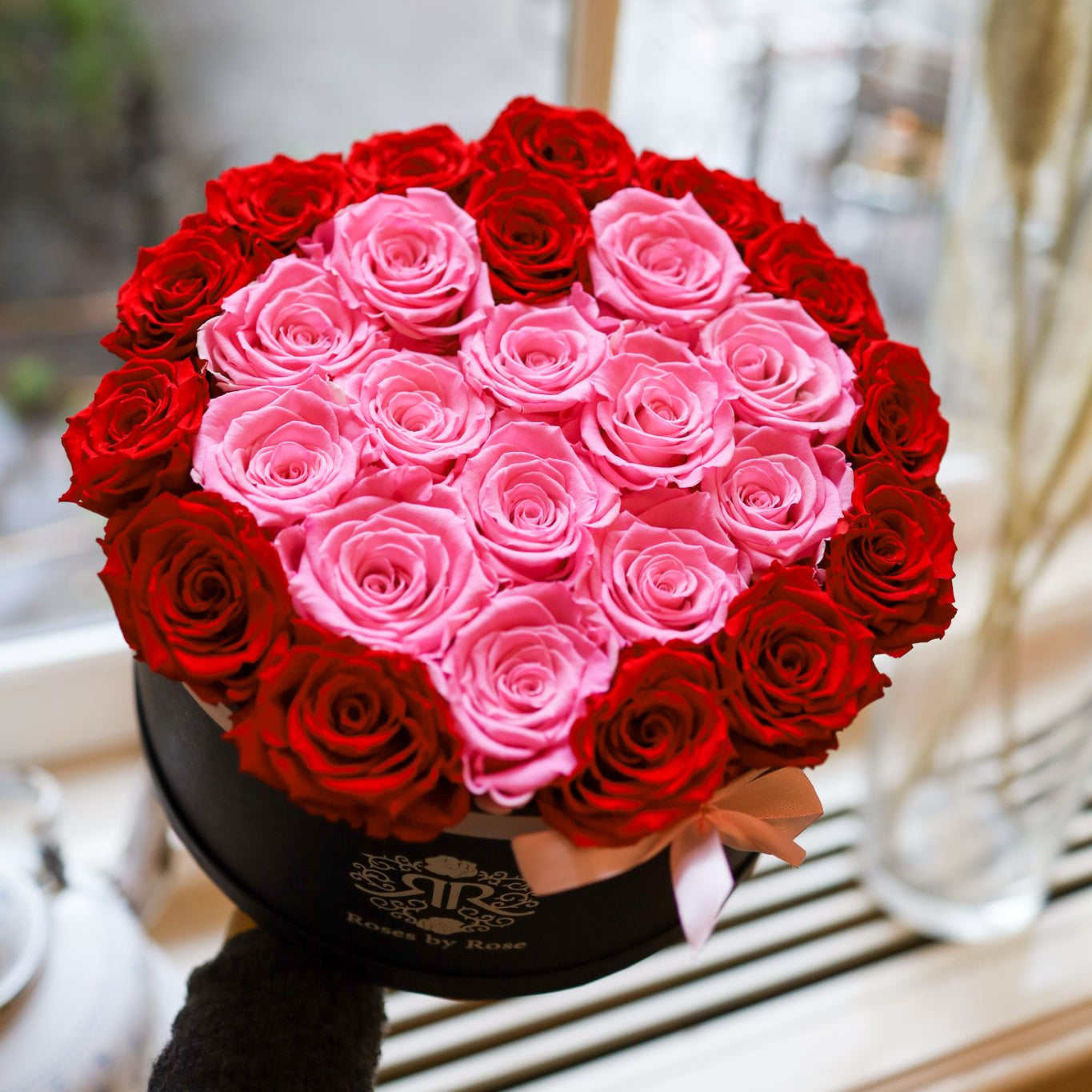 Een hartvormige rozenbox met longlife rozen in Pink Heart stijl. Romantisch, luxe en gemaakt om te verrassen.