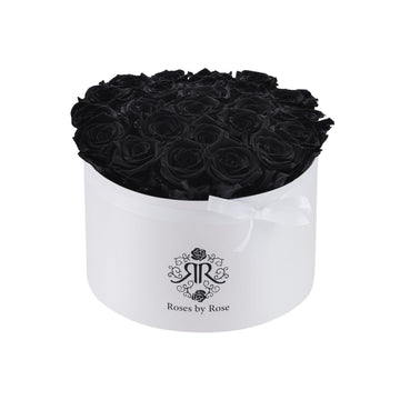De Black Roses longlife flowerbox is verkrijgbaar in drie verschillende Formaaten namelijk Regular, Large of XL formaat. De Black roses Longlife Roses Flowerboxen zijn verkrijgbaar in de dooskleuren wit of zwart. Naast deze klassieke box, is de Black roses Longlife Roses ook verkrijgbaar als Velvet box , welke een nóg luxere uitstraling heeft. Als je opzoek bent naar longlife rozen met subtiele zwarte strepen erin dan kun je ook kiezen voor de Coco flower box. Dit is een flowerbox, handgemaakte zwarte doos gevuld met prachtige desgewenst zwart gestreepte ivory kleur longlife rozen.